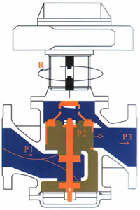 動態(tài)平衡電動調(diào)節(jié)閥是區(qū)別于傳統(tǒng)的電動調(diào)節(jié)閥的新一代產(chǎn)品。是動態(tài)平衡與電動調(diào)節(jié)一體化的產(chǎn)品。如右圖所示,在系統(tǒng)負荷波動較大的流量系統(tǒng)中,當(dāng)系統(tǒng)壓力變化時,動態(tài)平衡電動調(diào)節(jié)閥二端的壓差(P1-P3)也隨之變化。